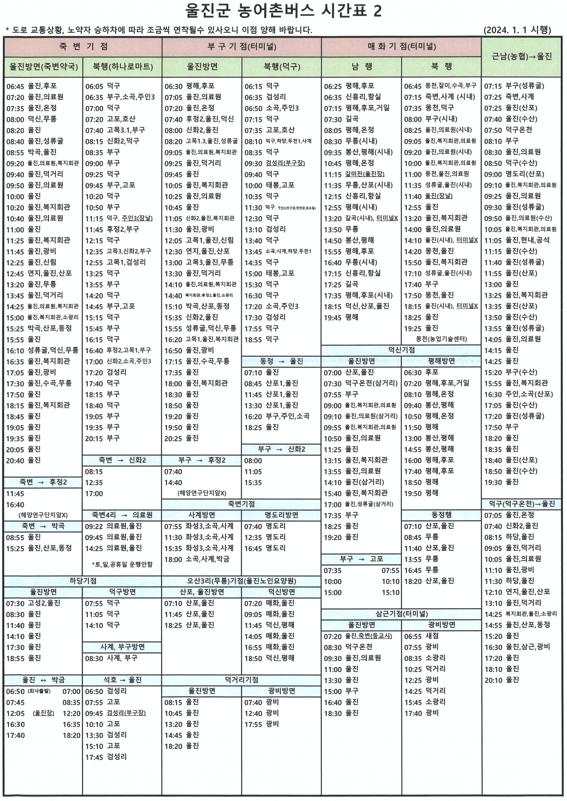 출발 농어촌버스 시간표 - 울진군청 자료