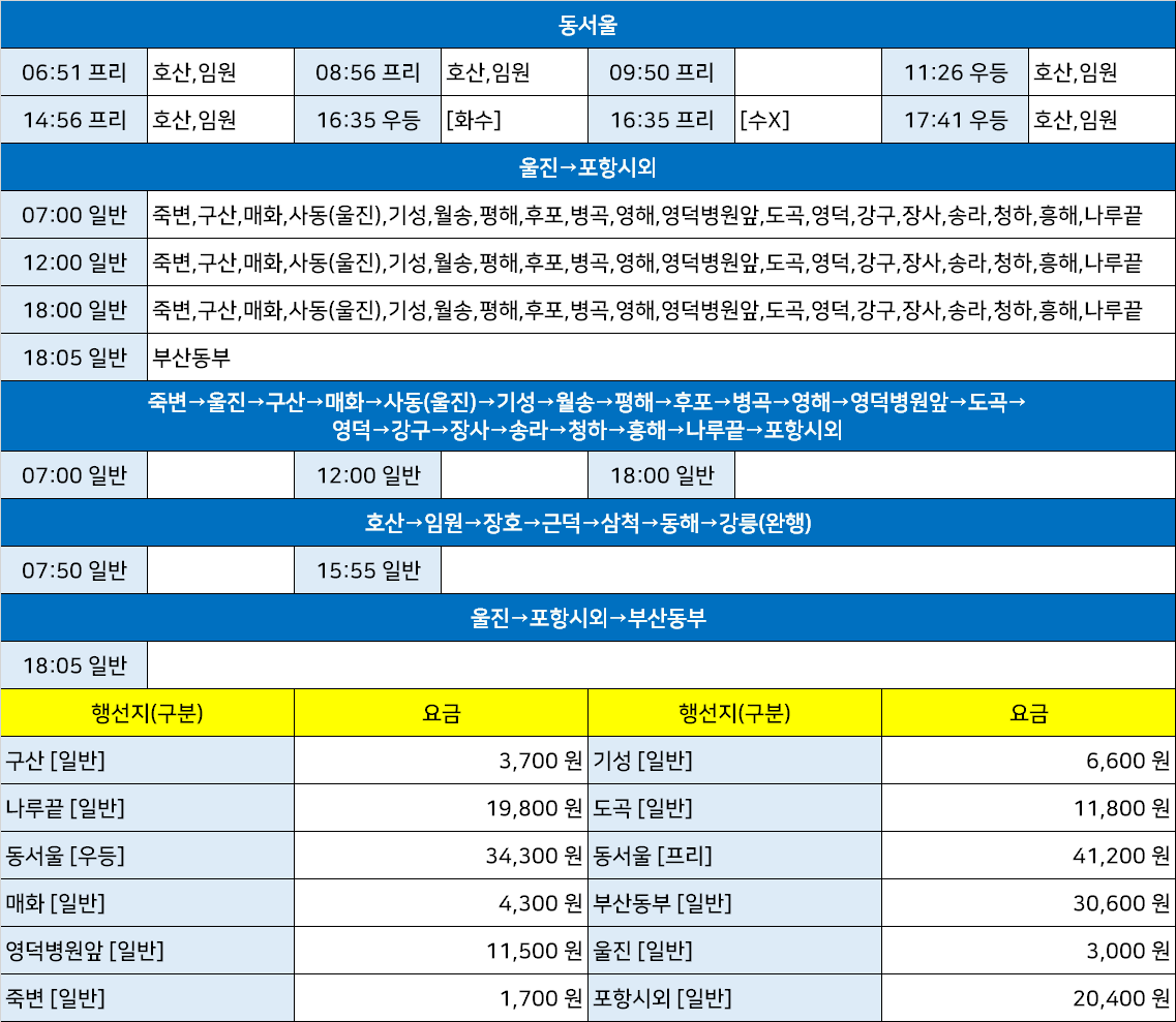 | 울진종합시외고속버스터미널 시간표 [울진정류장 울진정류소 읍내리터미널] (0) | 2025.03.25 |
