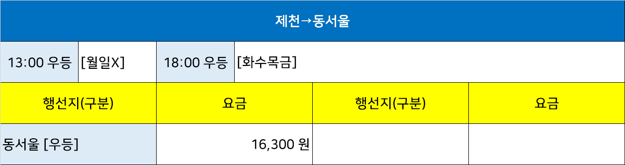 | 제천시외버스터미널 시간표 [제천시외터미널 의림동시외터미널] (0) | 2025.03.01 |
