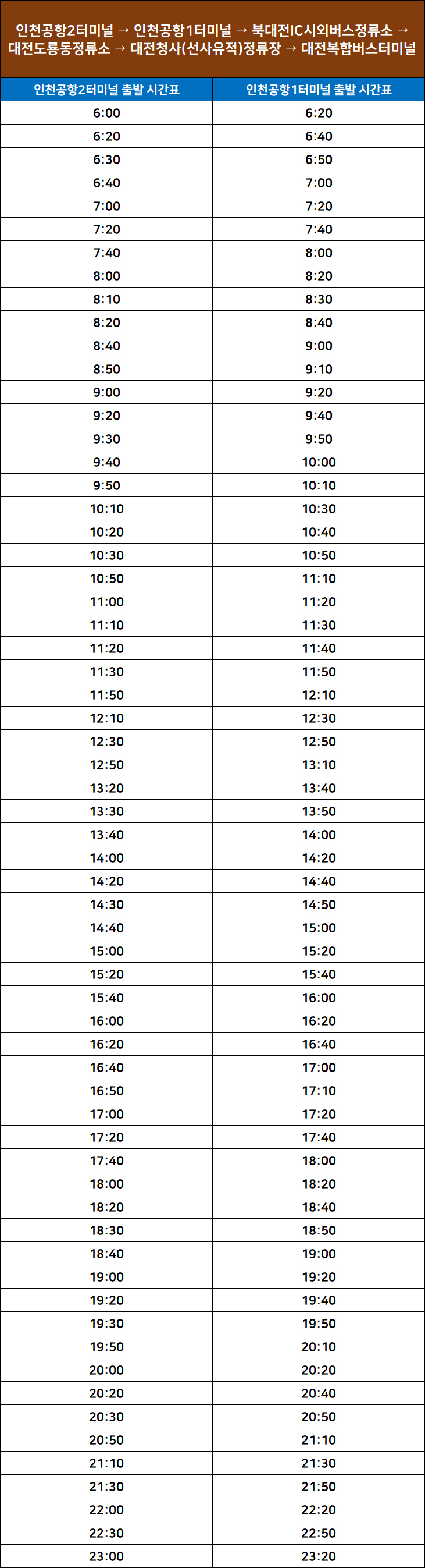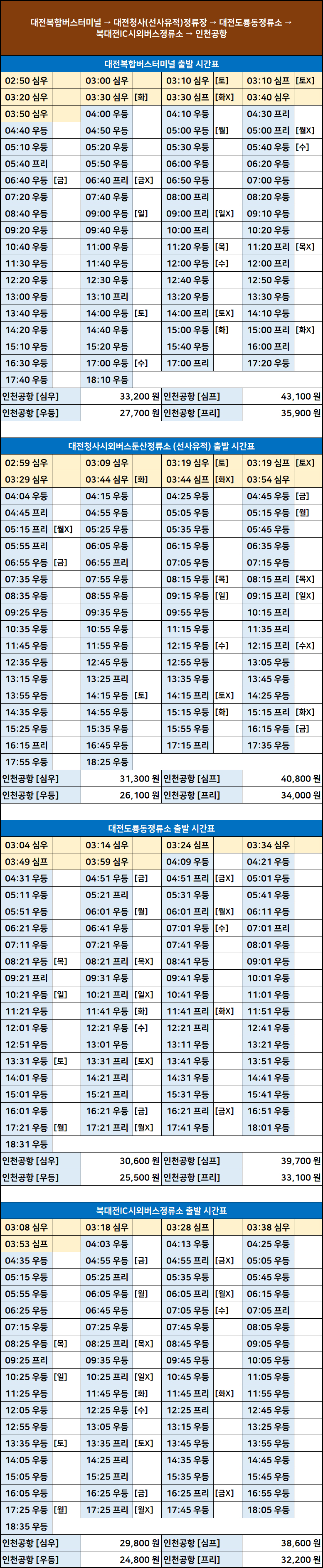 ▶ 대전복합 ↔ 인천공항 노선 & 출발 시간표 & 요금