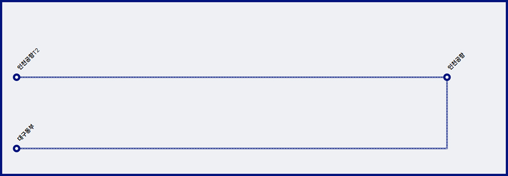 노선정보 : 인천공항 T2 → 인천공항 T1 → 대구동부