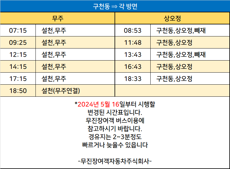 구천동버스터미널 시간표/요금표 2025년 03월 23일 기준