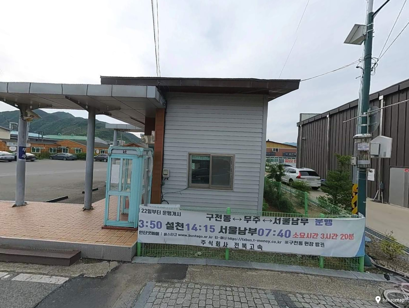 설천시외고속버스터미널 설천정류장 설천정류소 → "계북,리조트입구→구천동,무주→대전,무주→서울남부,무주→진안→전주시외,안성,안천,장계,적상,전주 안골,천천".