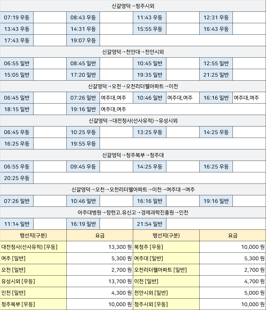 영통입구시외고속버스터미널 시간표/요금표 2025년 04월 17일 기준