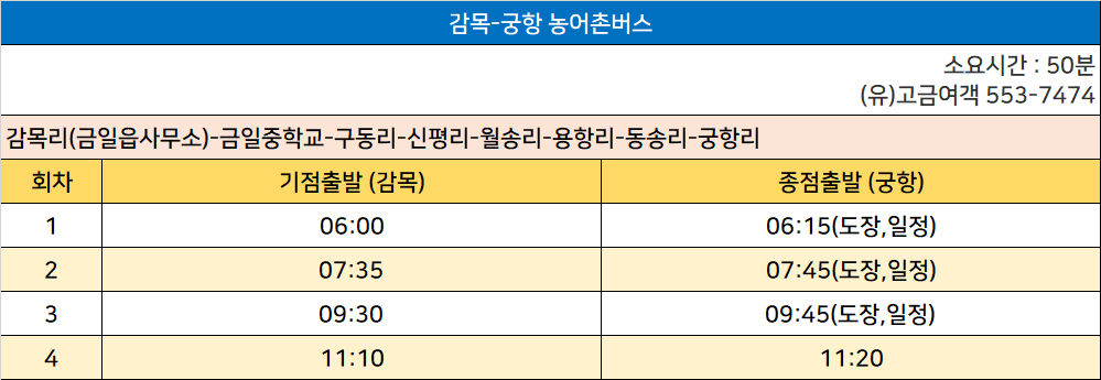 ●감목-궁항 농어촌버스 노선정보: 감목리(금일읍사무소)-금일중학교-구동리-신평리-월송리-용항리-동송리-궁항리