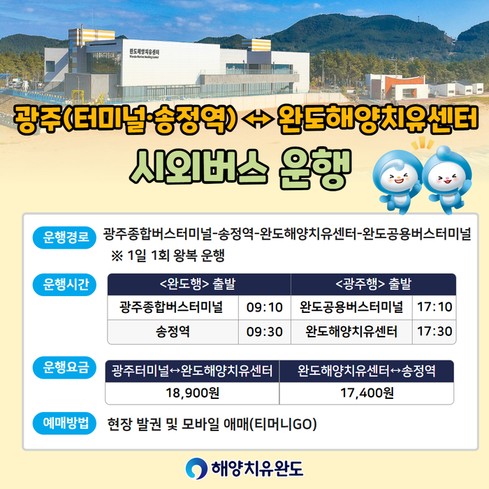 광주유스퀘어터미널, 송정역 ↔ 완도해양치유센터 시외버스 운행