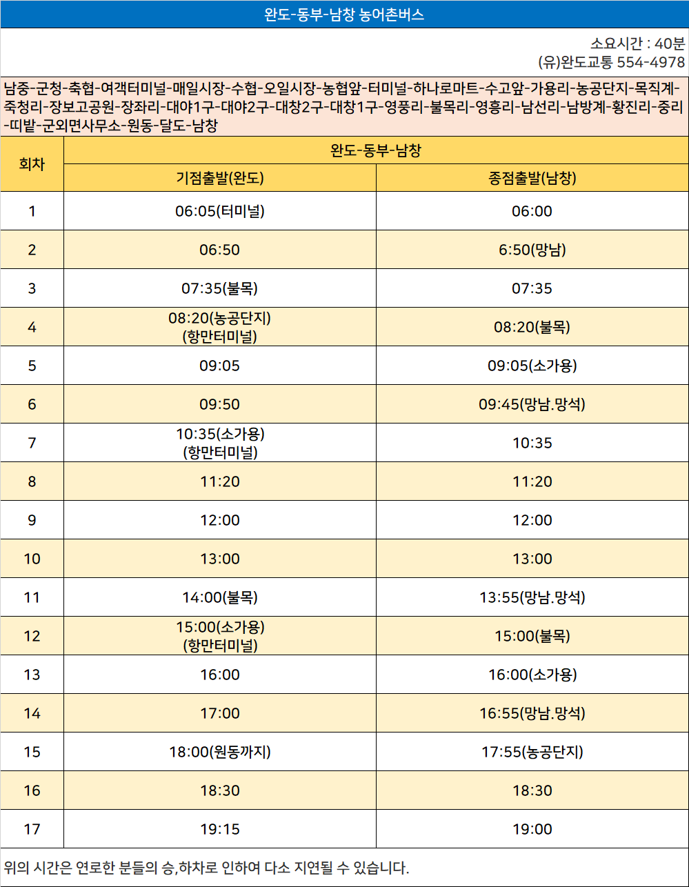 완도 시내버스 시간표 2025년 04월 27일 기준