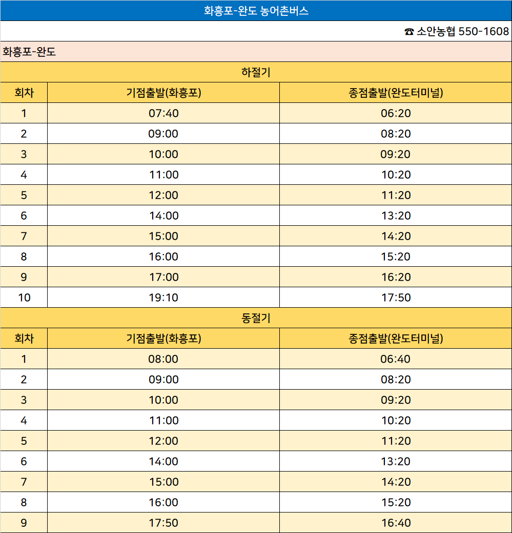 ●화흥포-완도 농어촌버스 노선정보: 화흥포-완도