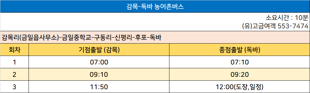 ●감목-독바 농어촌버스 노선정보: 감목리(금일읍사무소)-금일중학교-구동리-신평리-후포-독바