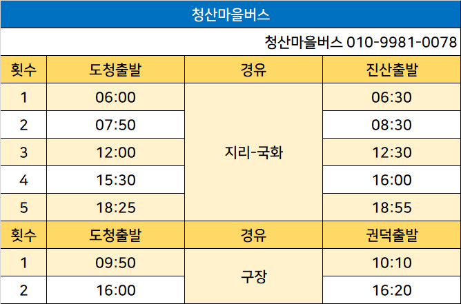 ●청산마을버스 노선정보: 도청,진산, 권덕, 지리-국화, 구장