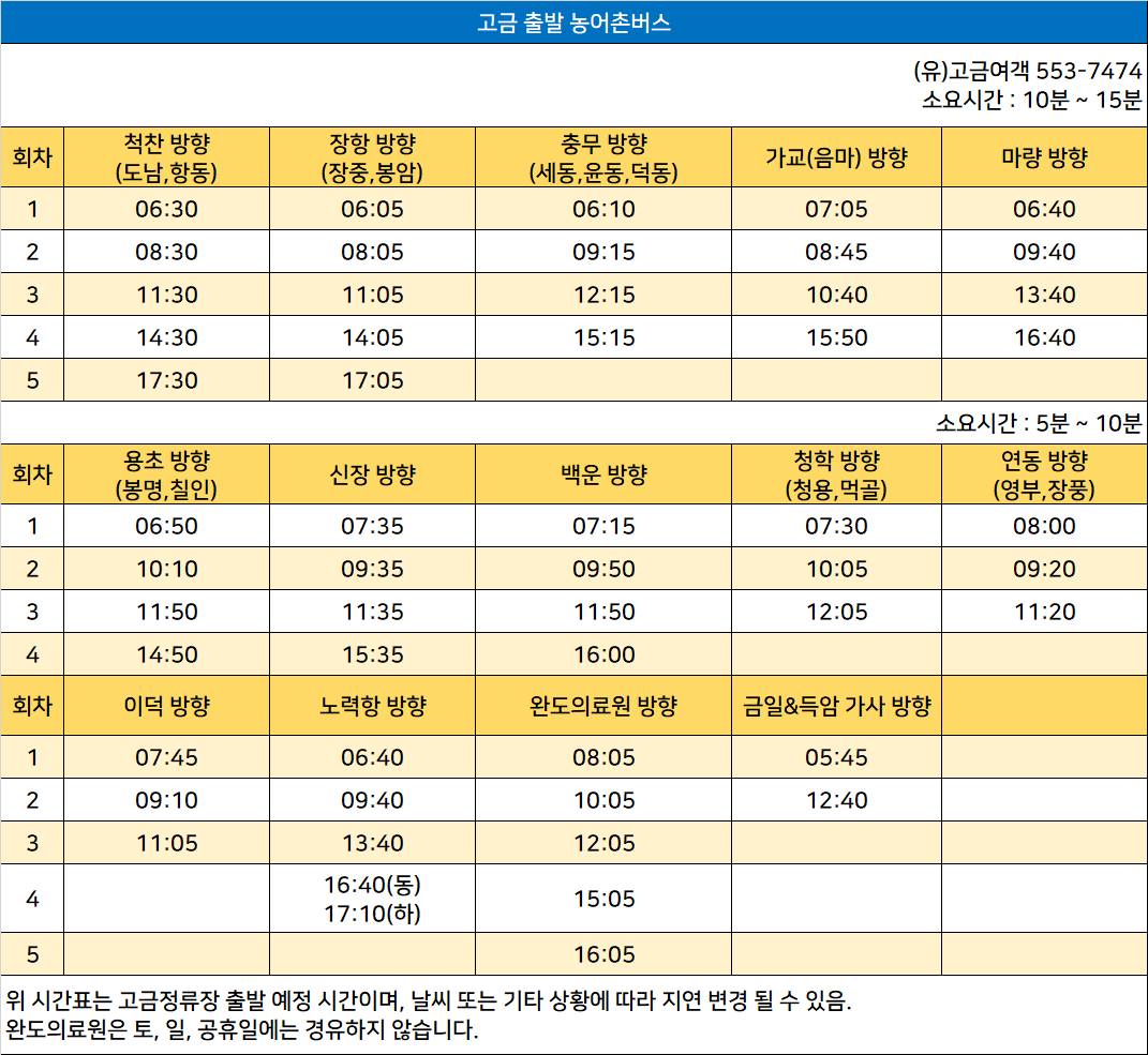 | 고금시외고속버스터미널 시간표 [고금정류장 고금정류소 고금면터미널 덕암리터미널] (0) | 2025.04.27 |