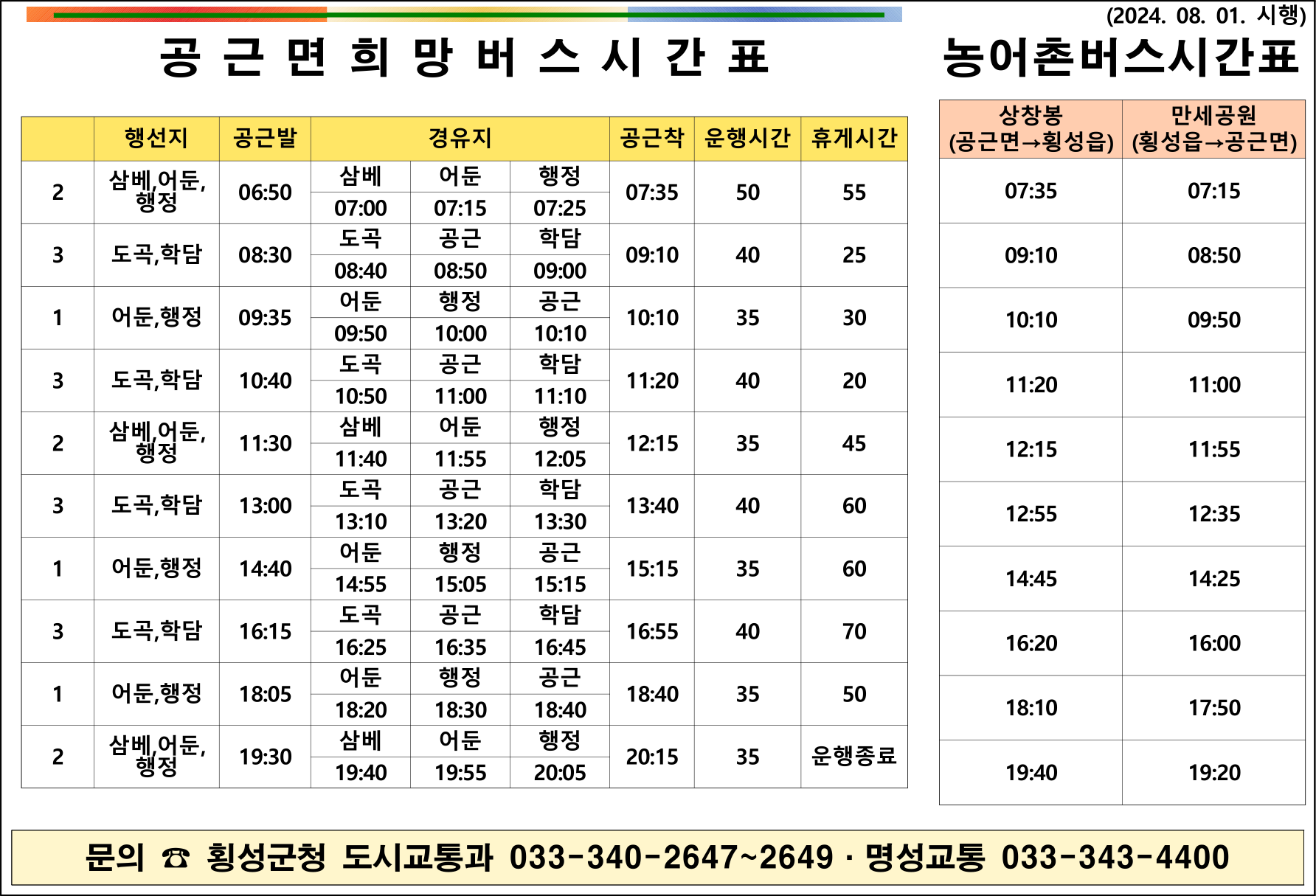 횡성 공근면 시내버스 시간표 2025년 04월 30일 기준