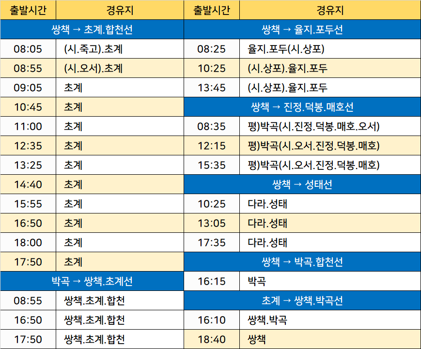 쌍책정류소 농어촌버스 노선정보: