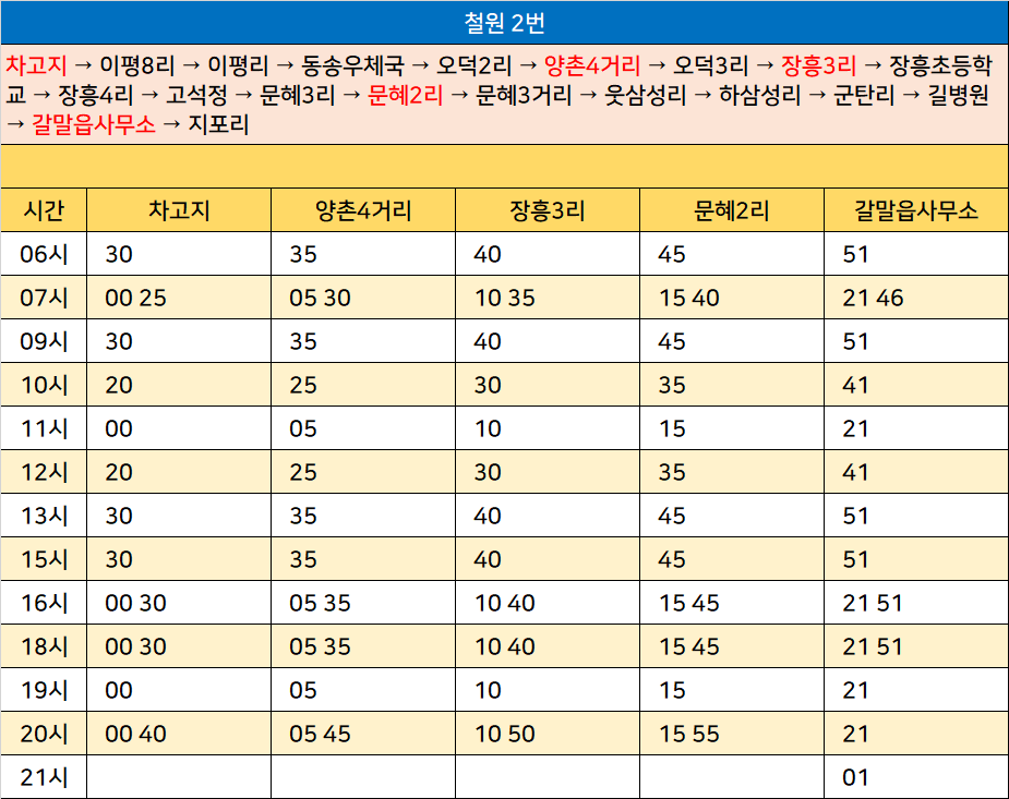 철원 시내버스 시간표 2025년 05월 24일 기준