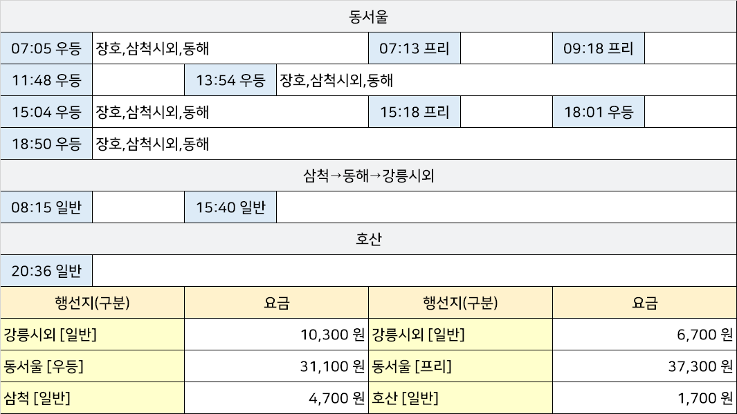 | 삼척고속버스터미널 시간표 [삼척고속터미널 남양동고속터미널] (0) | 2025.05.30 |