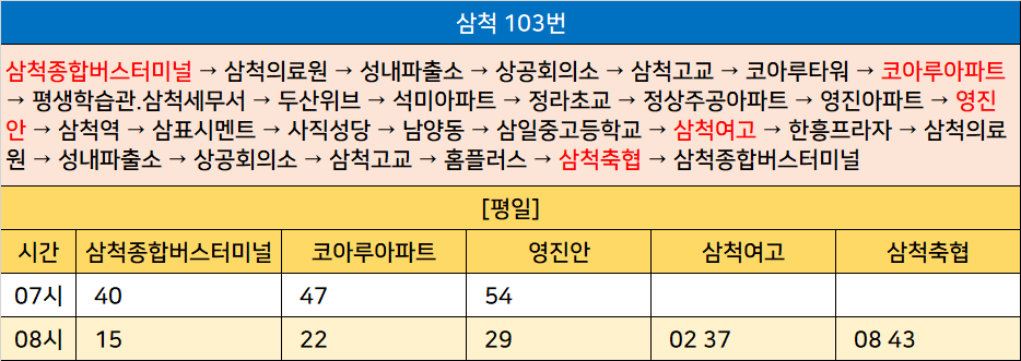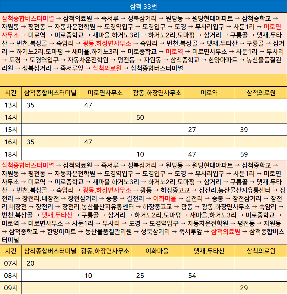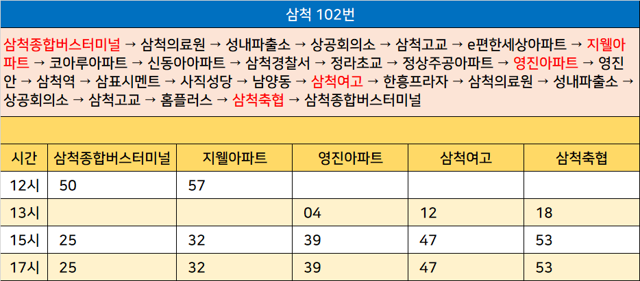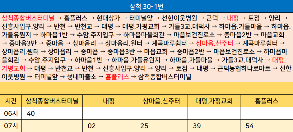 삼척 시내버스 시간표 2025년 05월 30일 기준