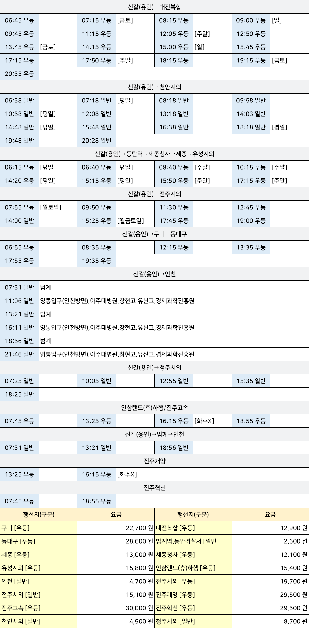 | 용인공용시외고속버스터미널 시간표 [용인정류장 용인정류소 김량장동터미널] (0) | 2025.04.05 |