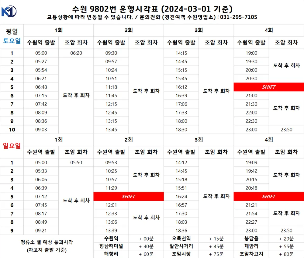 장신대시외고속버스정류장 시간표 [장신대정류소 장신대터미널] (0) | 2025.03.11 |