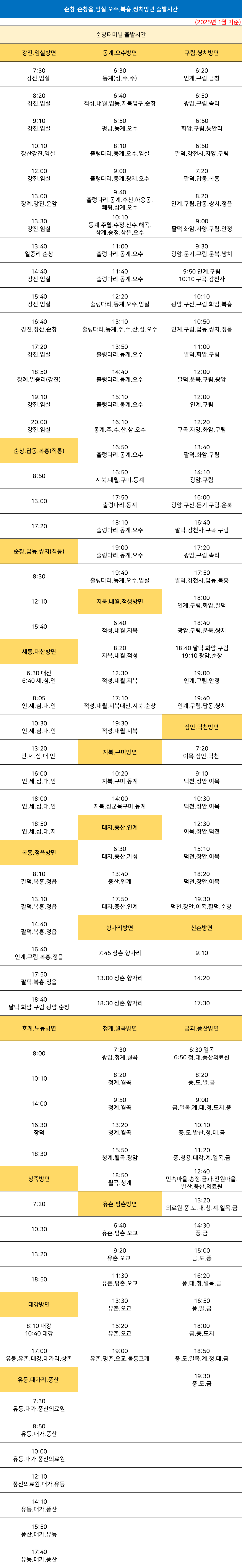 순창 시외버스 터미널 시간표 2025년 02월 14일 기준
