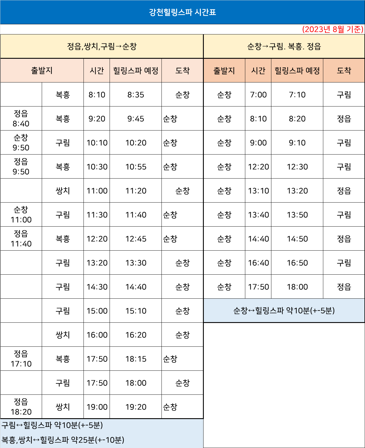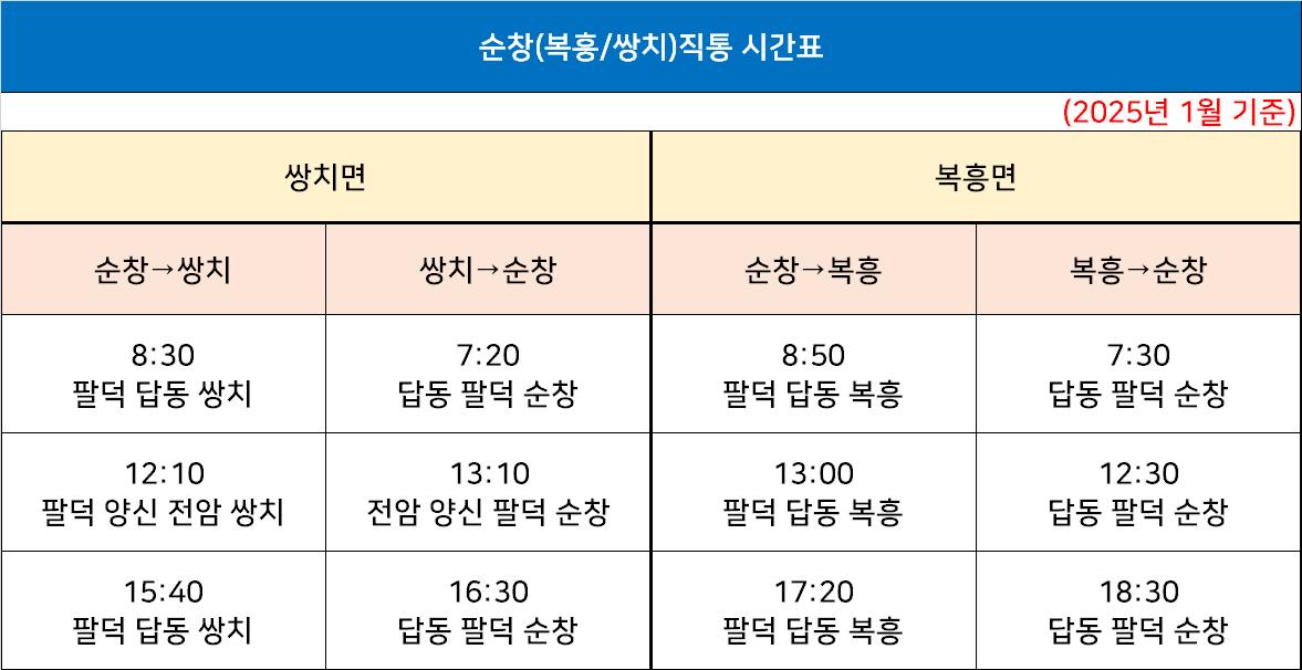 순창-순창읍.임실.오수.복흥.쌍치방면 출발시간