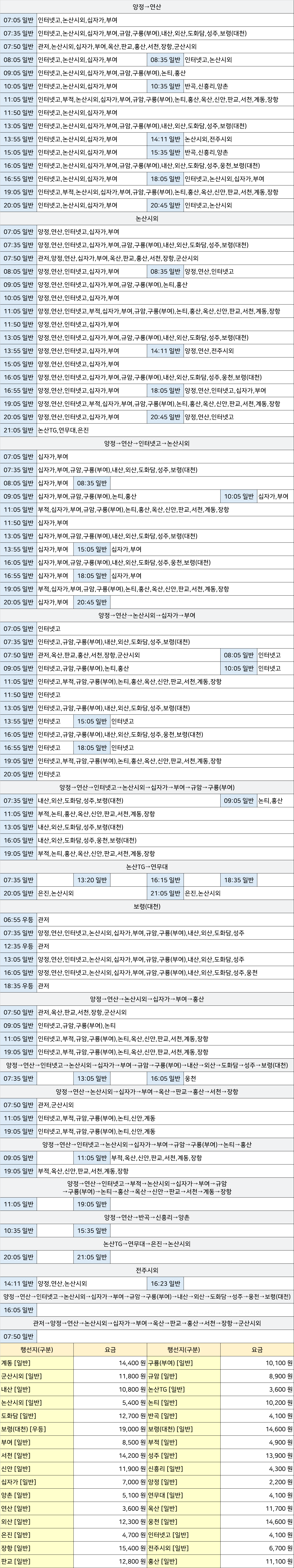 도마동 시외버스 정류장 시간표/요금표 2025년 10월 14일 기준