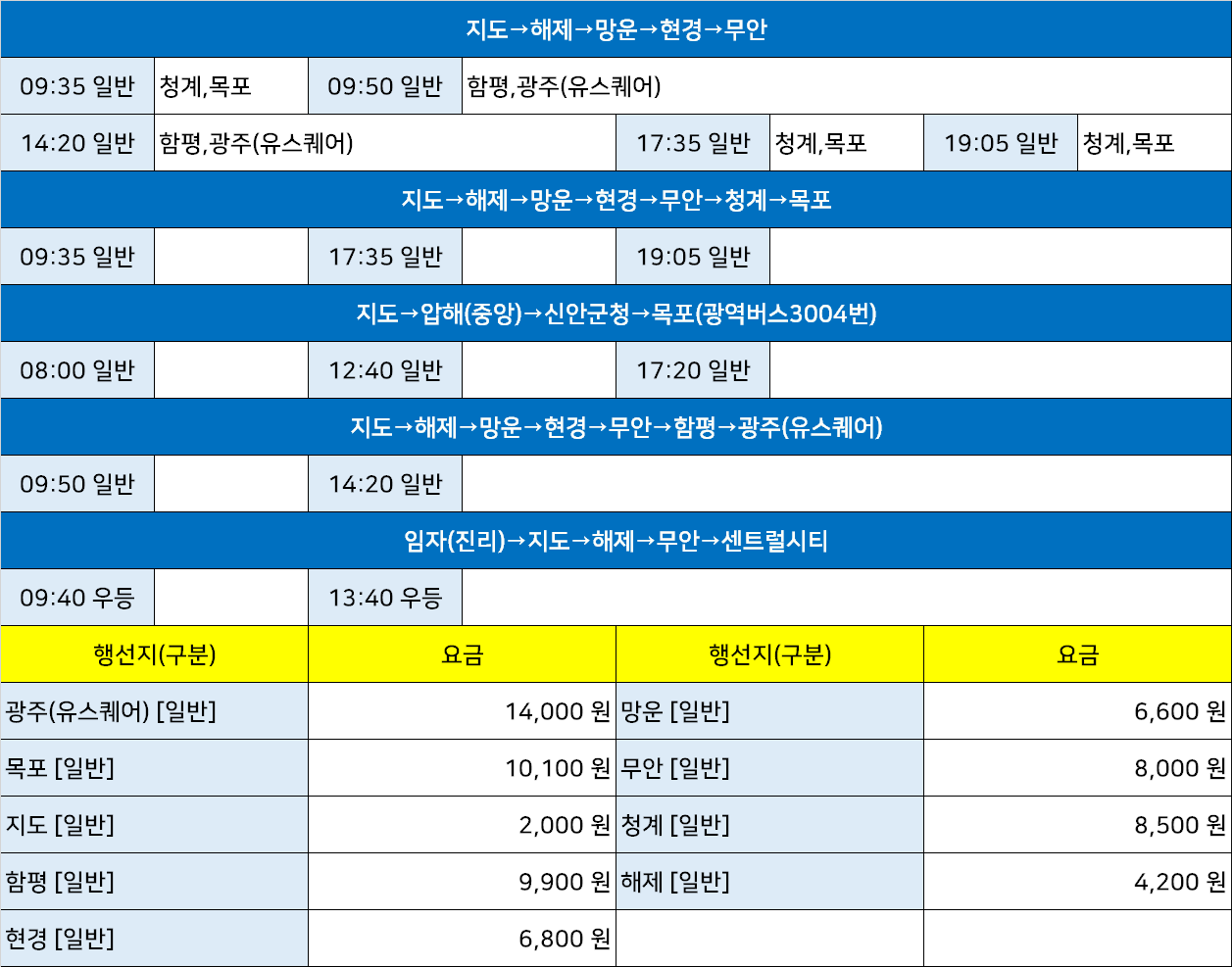 | 해제여객시외고속버스터미널 시간표 [해제정류소 해제정류장] (0) | 2025.03.20 |