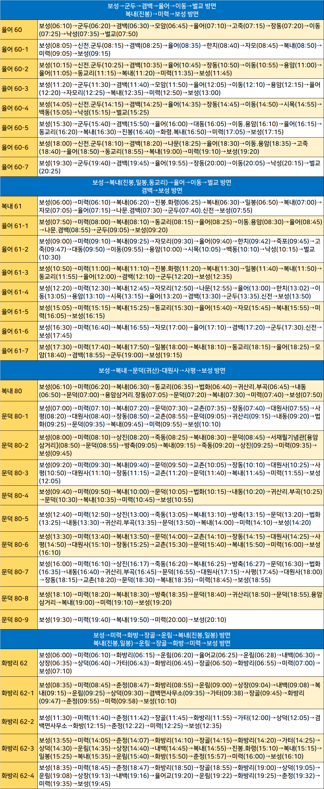 복내 시외버스 정류장 시간표/요금표 2025년 03월 27일 기준