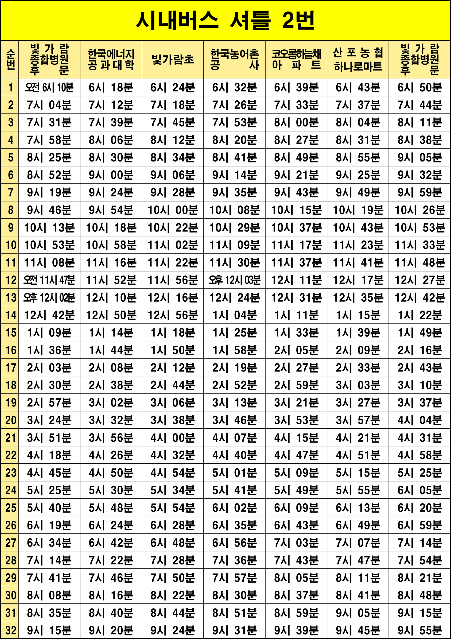 나주 빛가람동 시외버스 정류장 시간표/요금표 2025년 03월 25일 기준