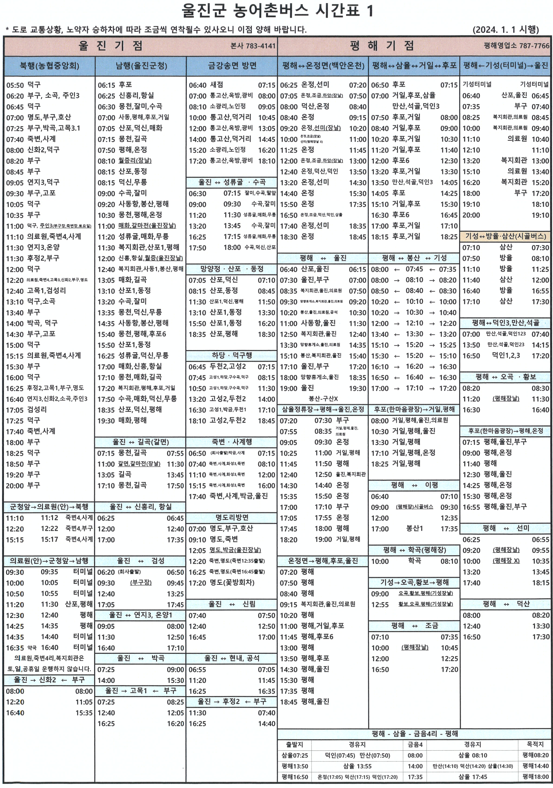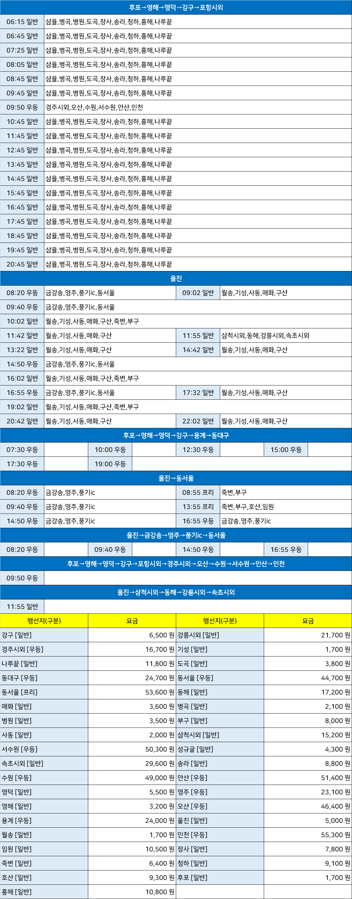 평해 시외버스 정류장 시간표/요금표 2025년 03월 26일 기준