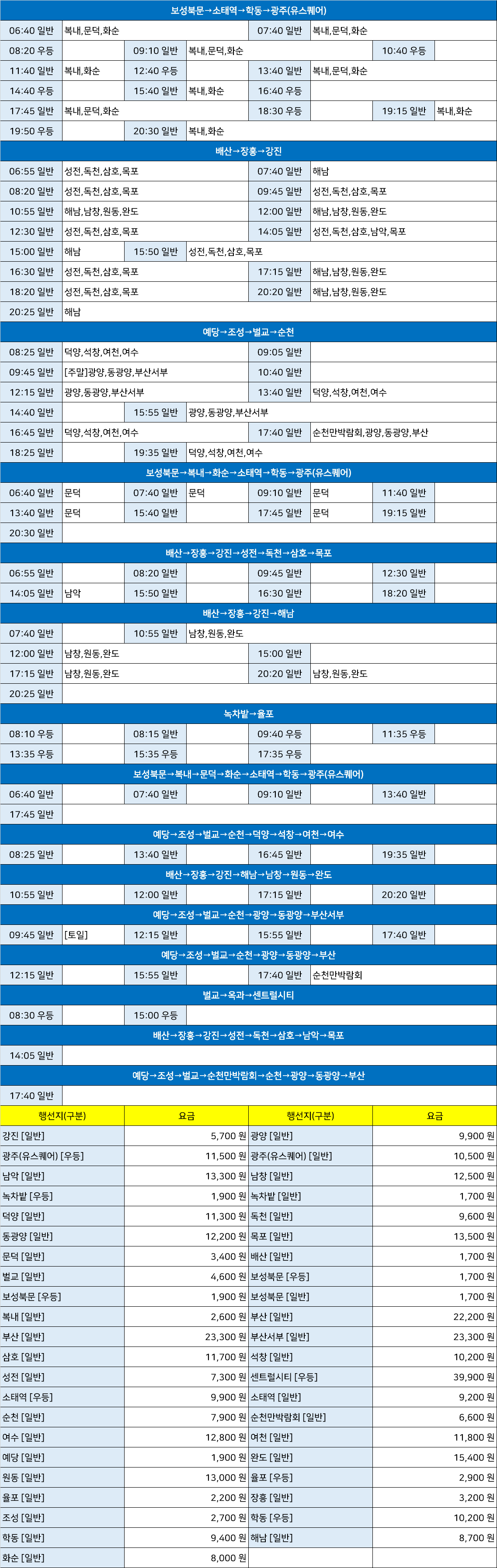 보성 시외버스 터미널 시간표/요금표 2025년 03월 28일 기준