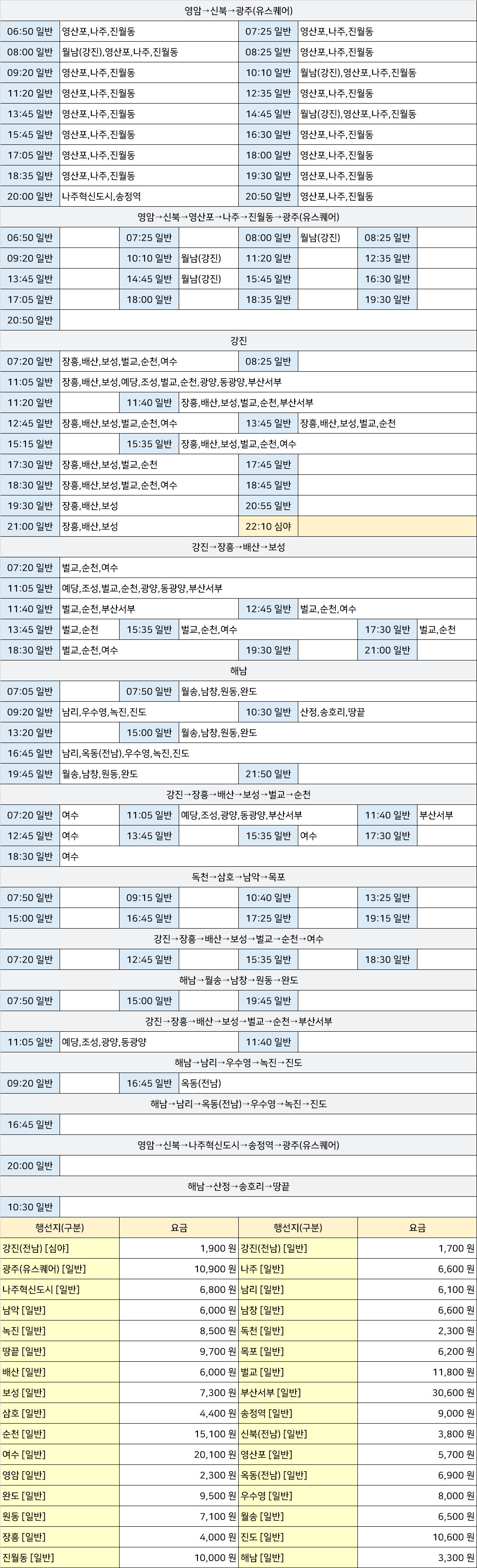 | 강진시외고속버스여객터미널 시간표 [강진정류소 강진정류장 강진읍터미널 평동리터미널] (0) | 2025.04.03 |