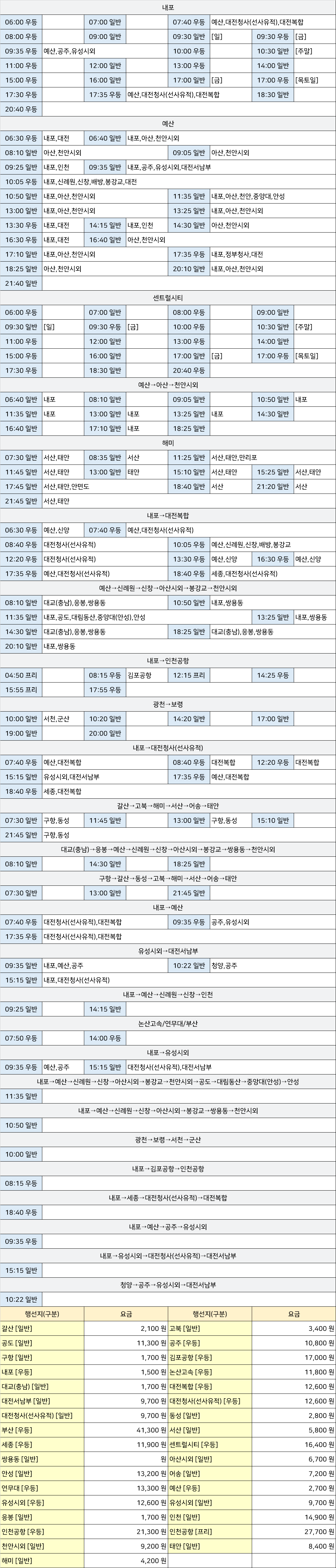 홍성 시외버스 터미널 시간표/요금표 2025년 06월 05일 기준