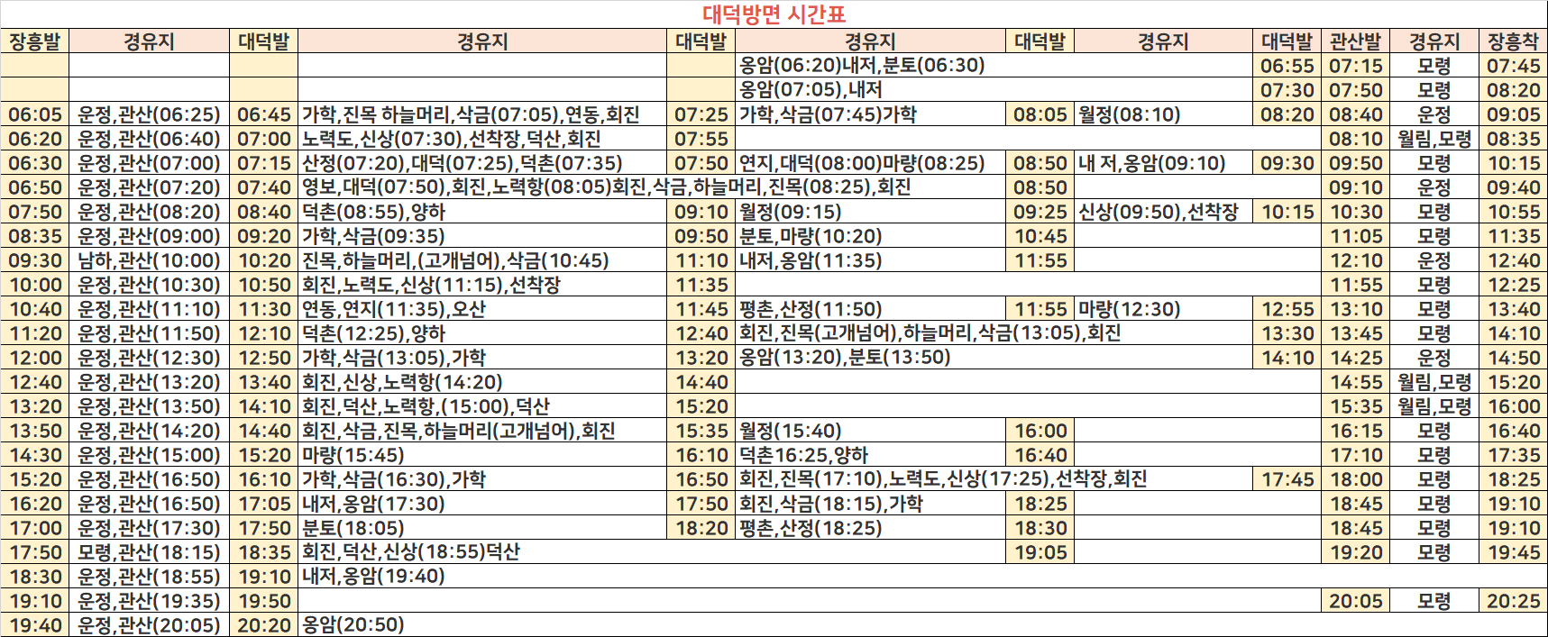 | 대덕공용시외고속버스터미널 시간표 [대덕정류장 대덕정류소 대덕읍터미널 신월리터미널] (0) | 2025.04.12 |