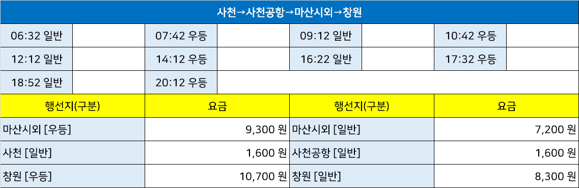 사천용현시외고속버스터미널 사천용현정류장 사천용현정류소 → "사천→사천공항→마산시외→창원".