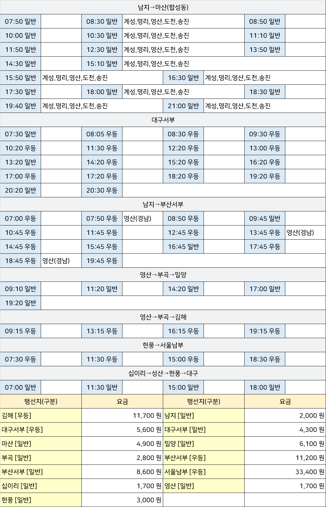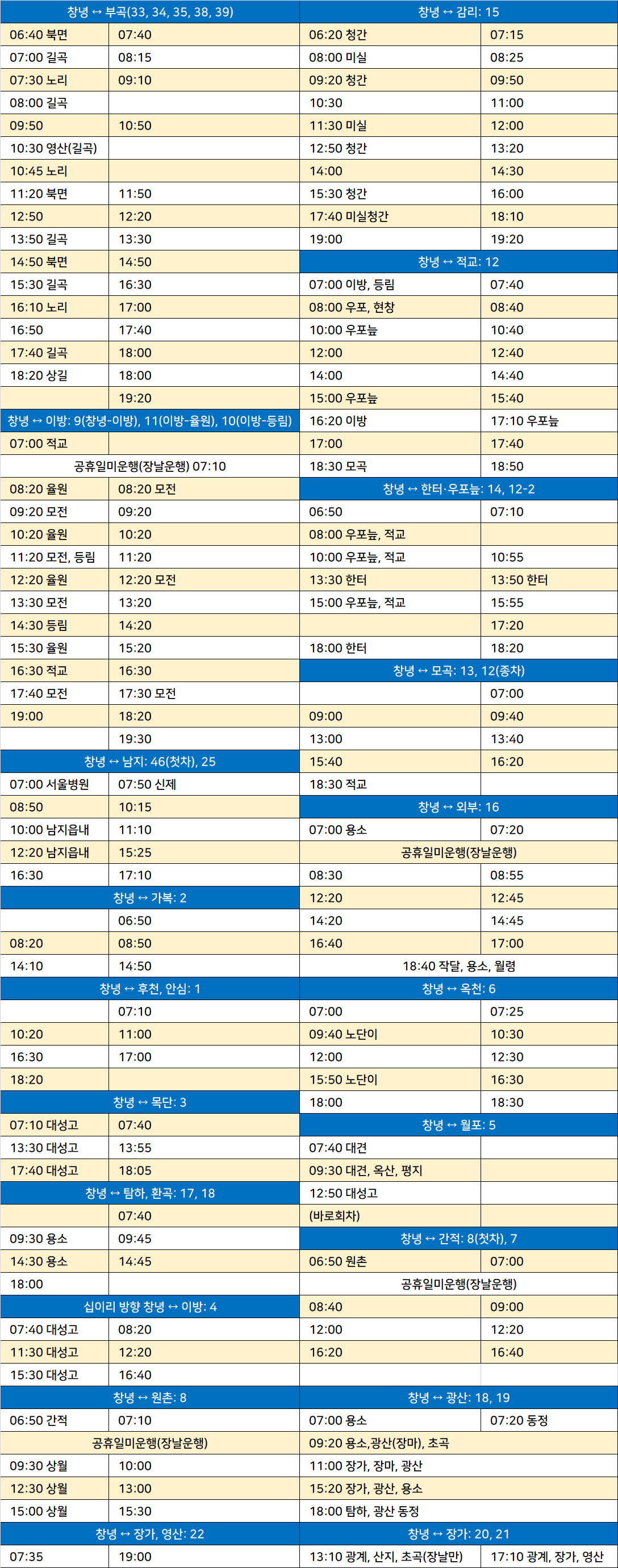 창녕 시외버스 터미널 시간표/요금표 2025년 04월 13일 기준