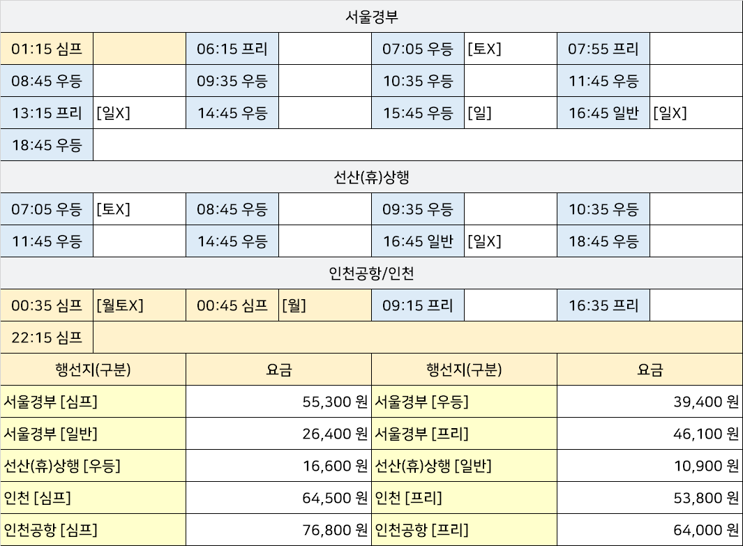 김해장유 고속버스 정류장 시간표/요금표 2025년 04월 18일 기준