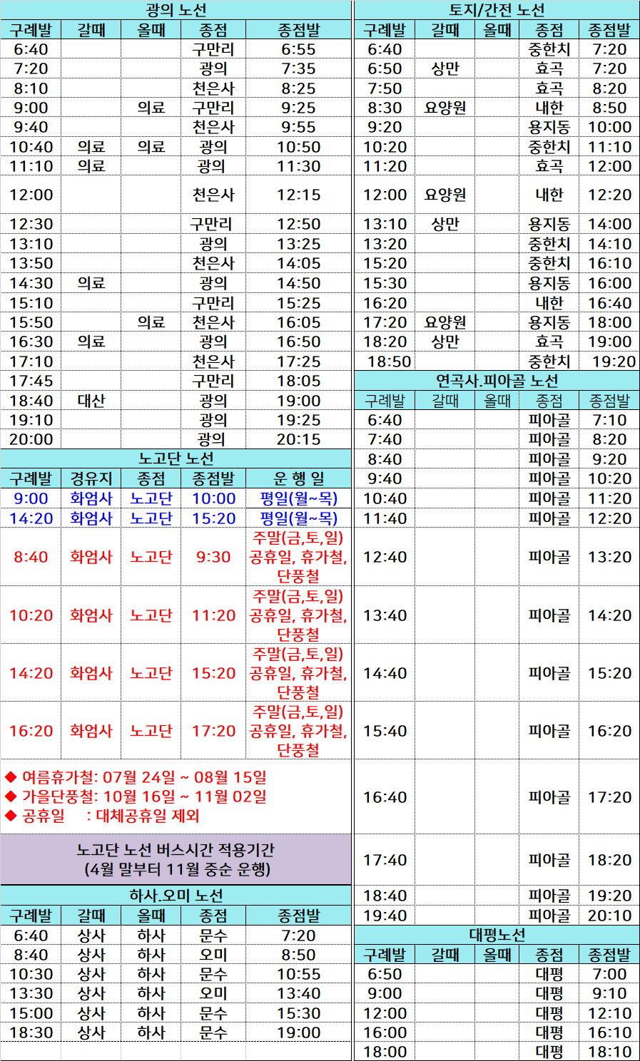 노고단 성삼재 시내버스 시간표