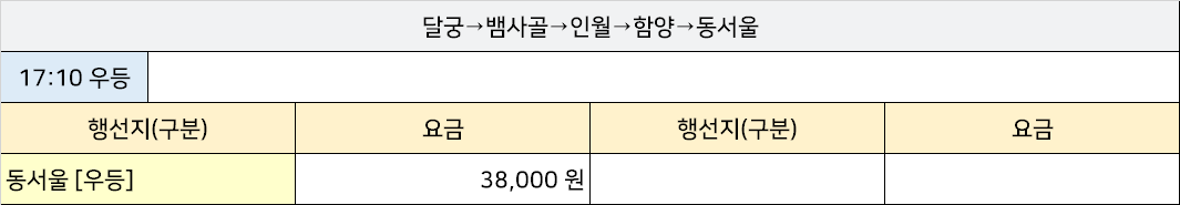 노고단(성삼재)시외고속버스터미널 노고단(성삼재)버스정류장 노고단(성삼재)버스정류소 → "달궁→뱀사골→인월→함양→동서울".