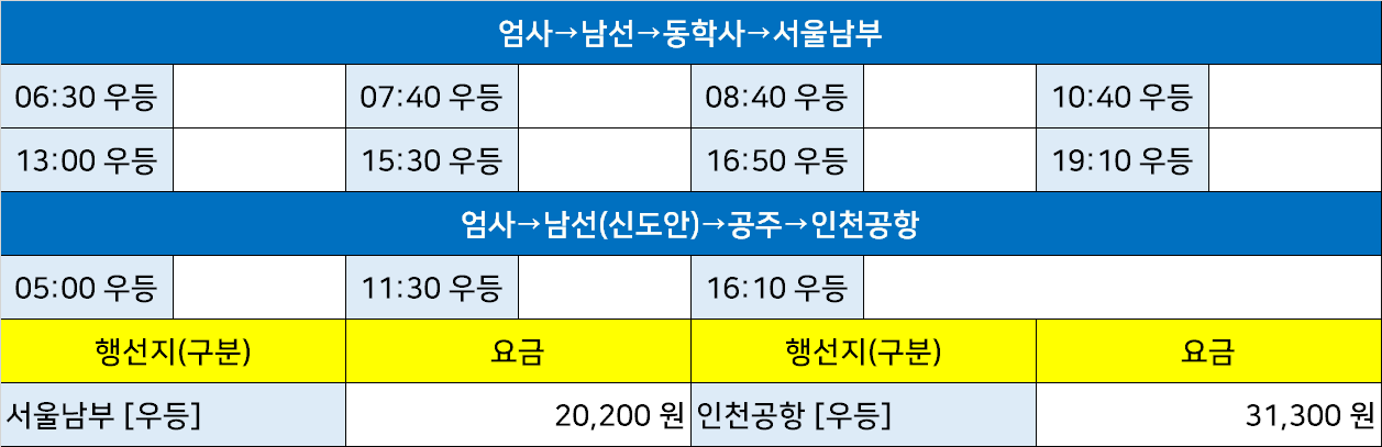 금암 시외버스 정류장 시간표/요금표 2025년 03월 03일 기준