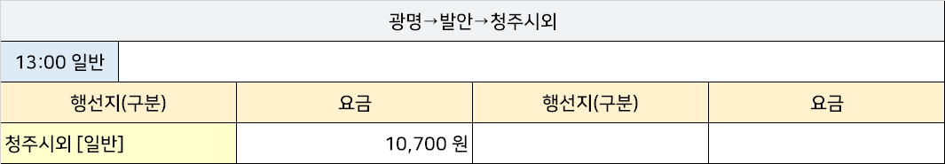 철산역시외버스터미널 철산역정류소 철산역정류장 → "광명→발안→청주시외".