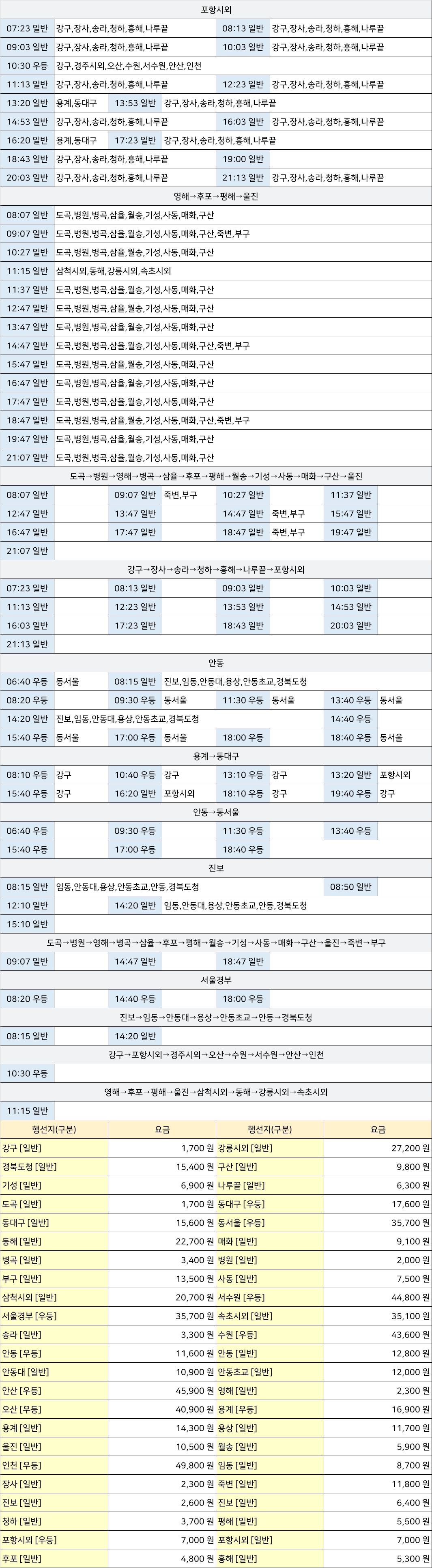 영덕 시외버스 터미널 시간표/요금표 2025년 05월 09일 기준