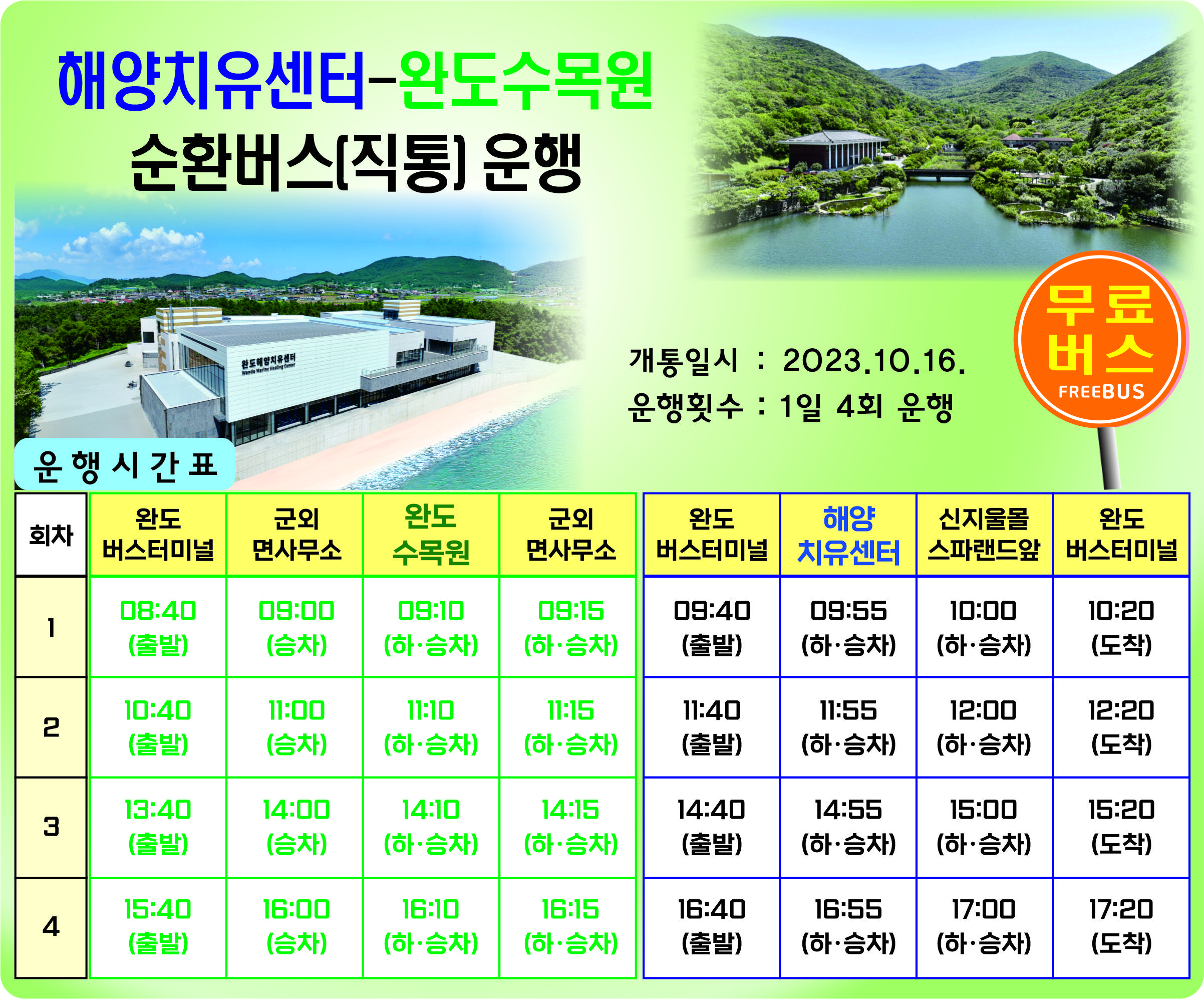 ●해양치유센터-완도수목원 순환버스 노선정보: 해양치유센터-완도수목원