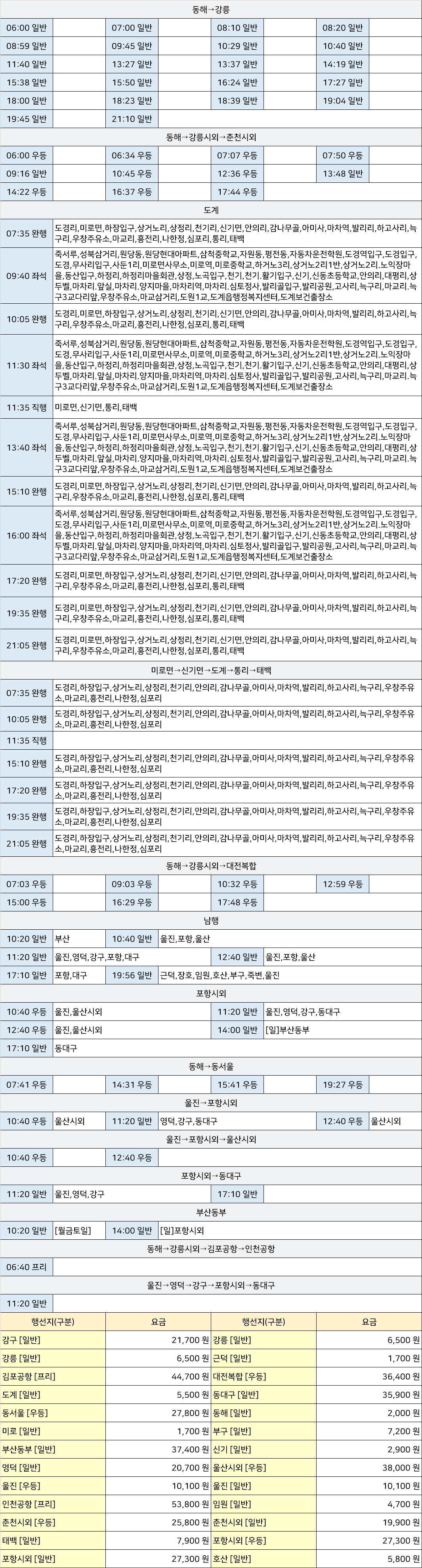 삼척 시외버스 터미널 시간표/요금표 2025년 05월 30일 기준