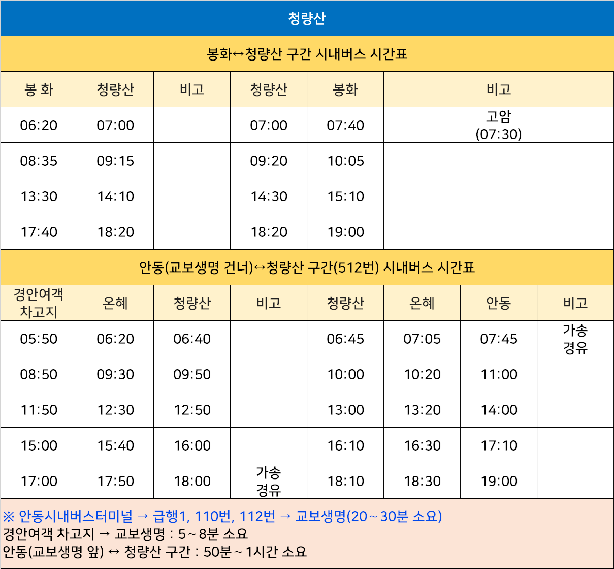 봉화↔청량산, 안동(교보생명 건너)↔온혜↔청량산(512번)