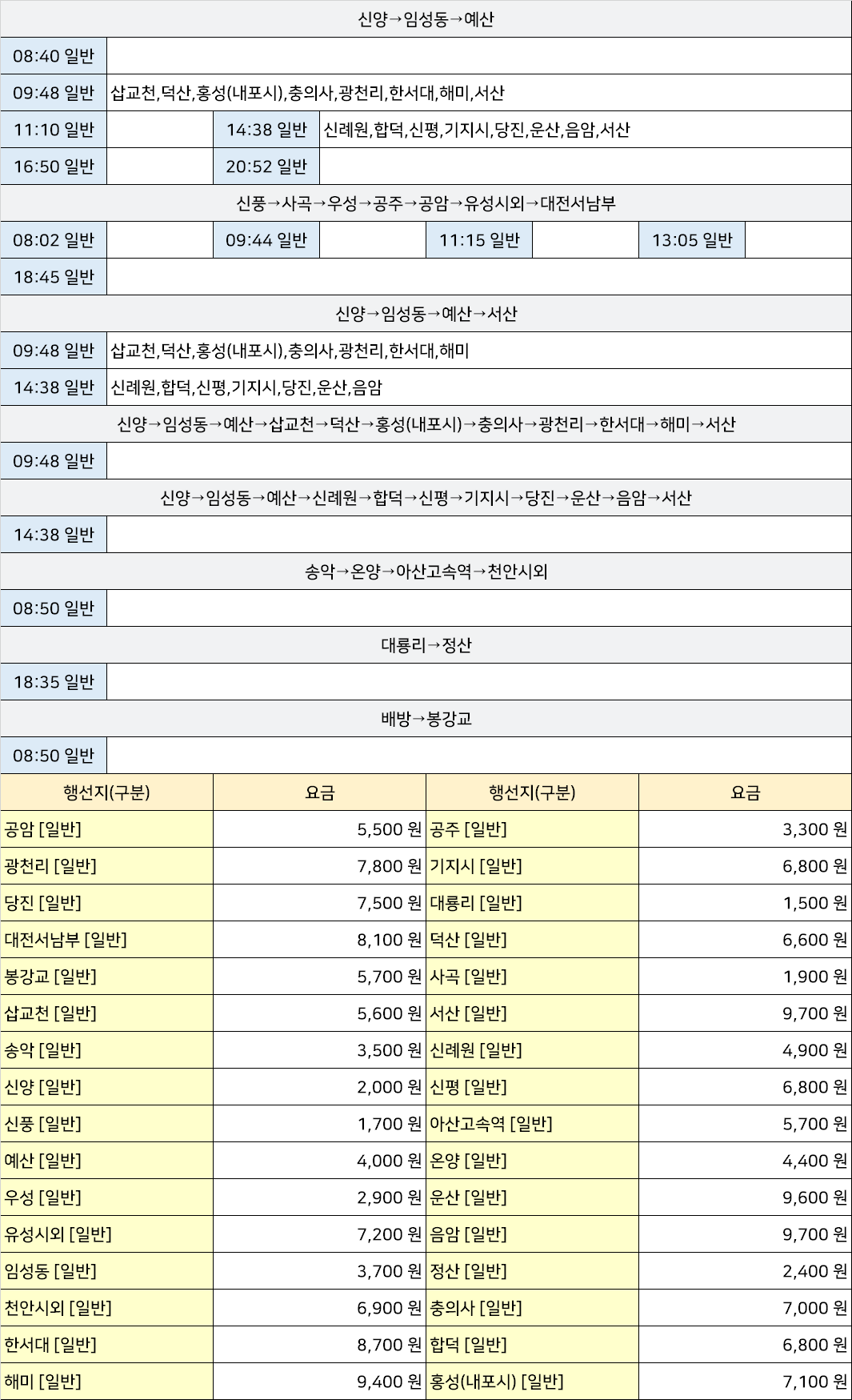 광정시외고속버스터미널 시간표 [광정정류장 광정정류소 정안면터미널 광정리터미널] (0) | 2025.04.04 |