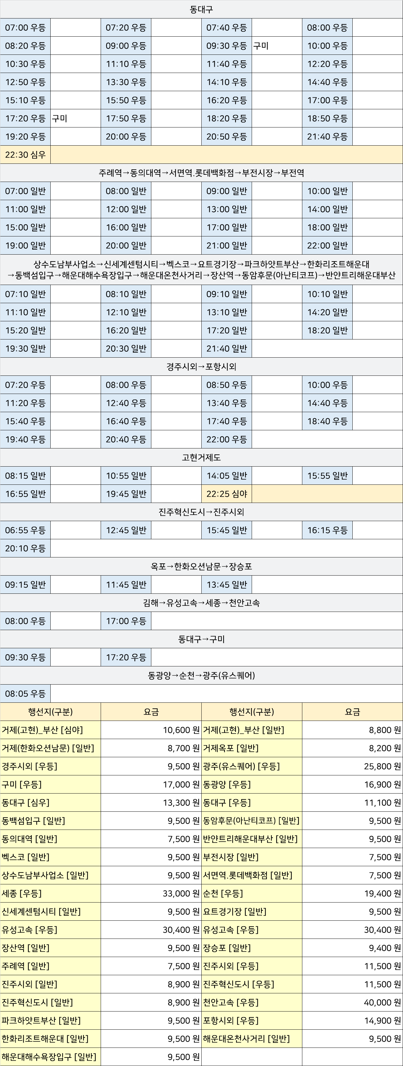 김해공항 시외버스 정류장 시간표/요금표 2025년 10월 16일 기준