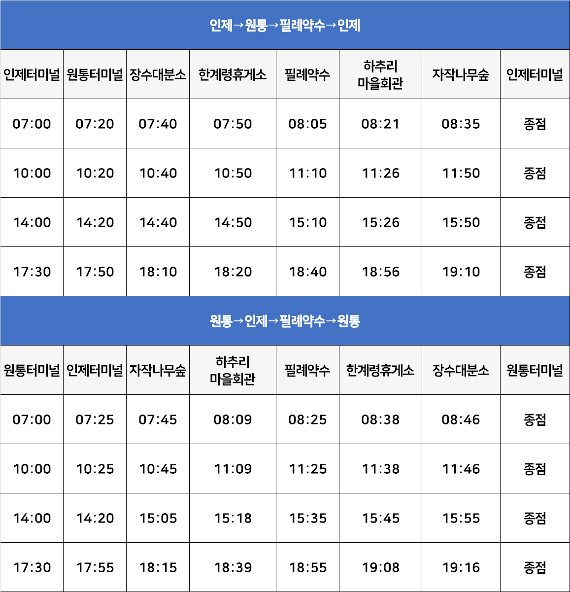 | 원통시외고속버스터미널 시간표 [원통정류소 원통정류장 북면터미널 원통리터미널] (0) | 2025.05.11 |