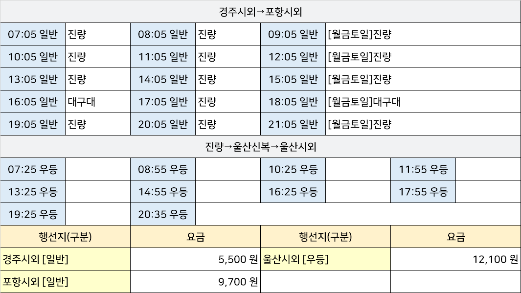 영남대시외고속버스터미널 영남대버스정류장 영남대버스정류소 → "경주시외→포항시외,대구대,진량→울산신복→울산시외".