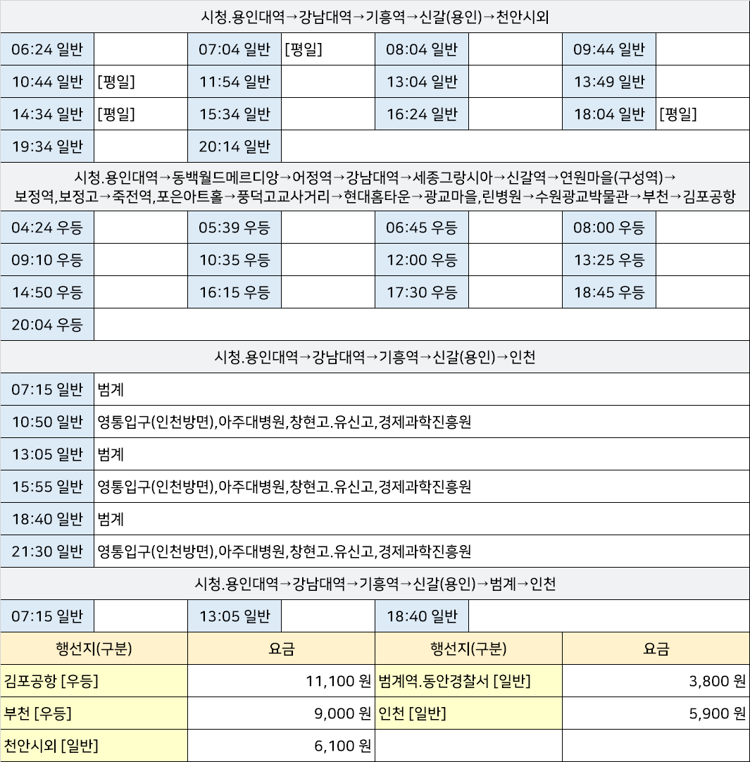 | 용인신갈시외고속버스터미널 시간표 [용인신갈정류장 용인신갈정류소 신갈고가밑터미널] (0) | 2025.04.05 |