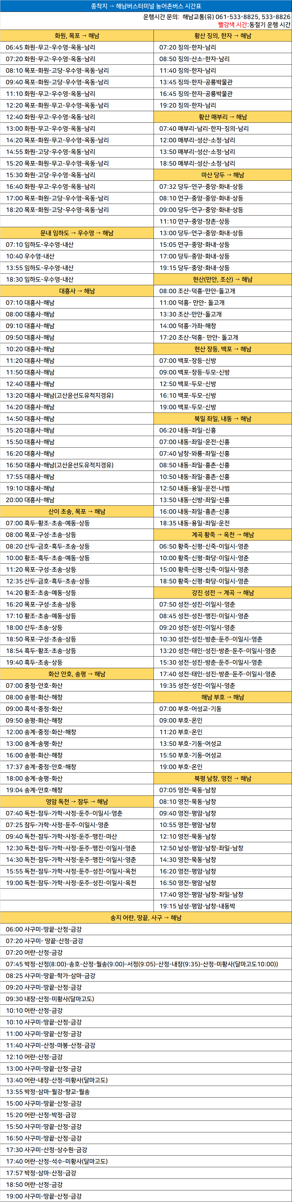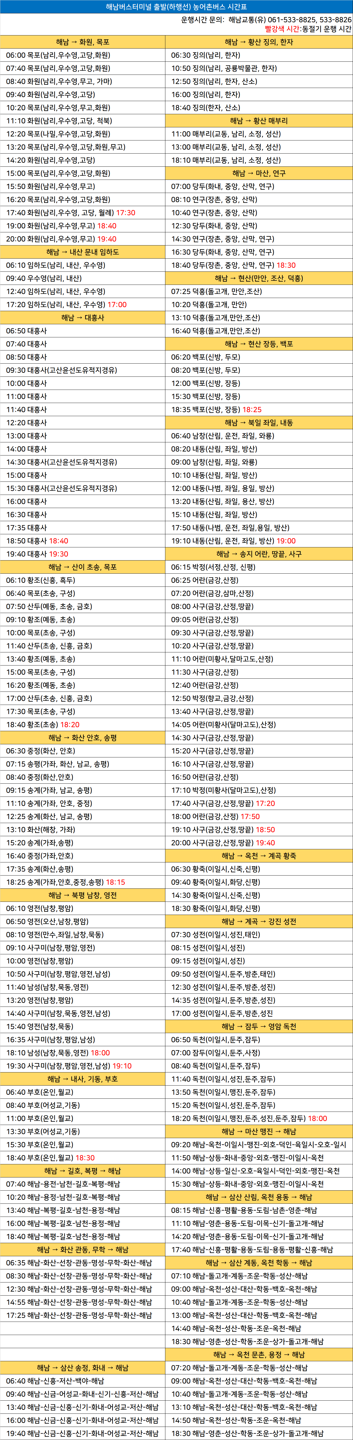 해남 시외버스 터미널 시간표/요금표 2025년 03월 22일 기준